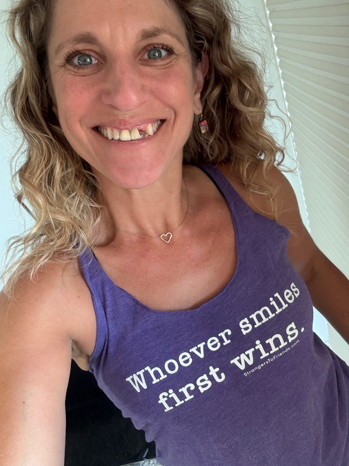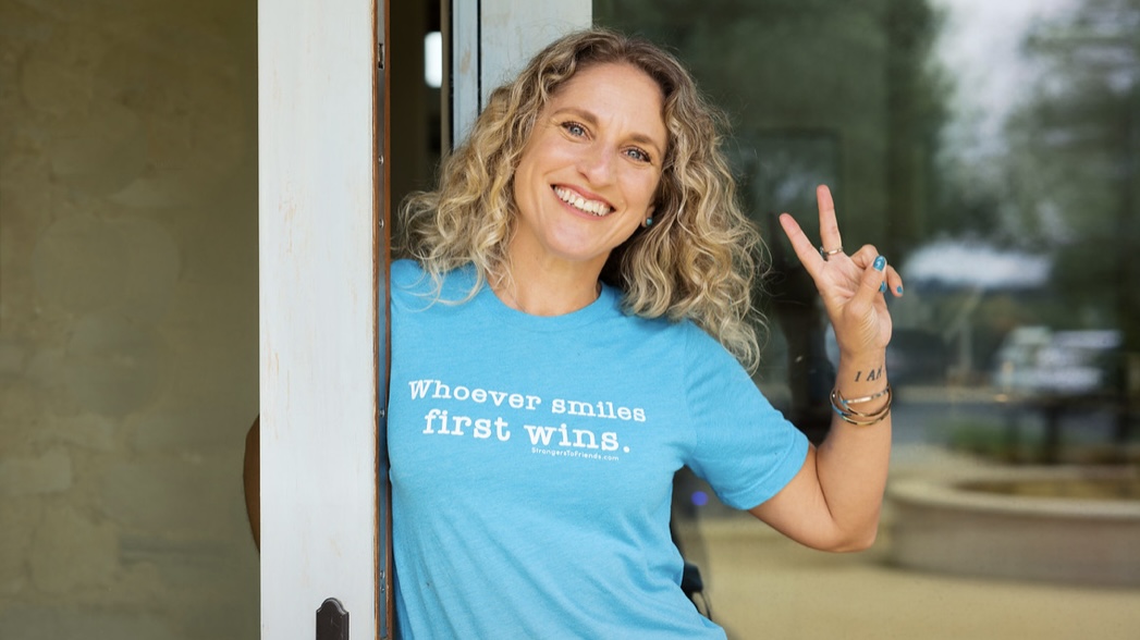 Carlyn’s Strangers To Friends Movement inspires you to embrace the possibility that everyone has a story behind their smile and our smiles connect us all.